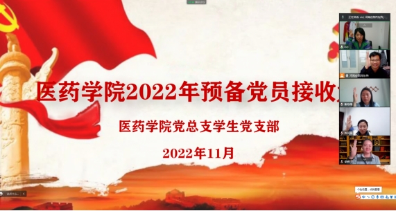 2022年11月24日下午,医药学院学生党支部召开预备党员接收大会。本次会议采用线上形式召开,学生党支部书记肖东伟主持会议。