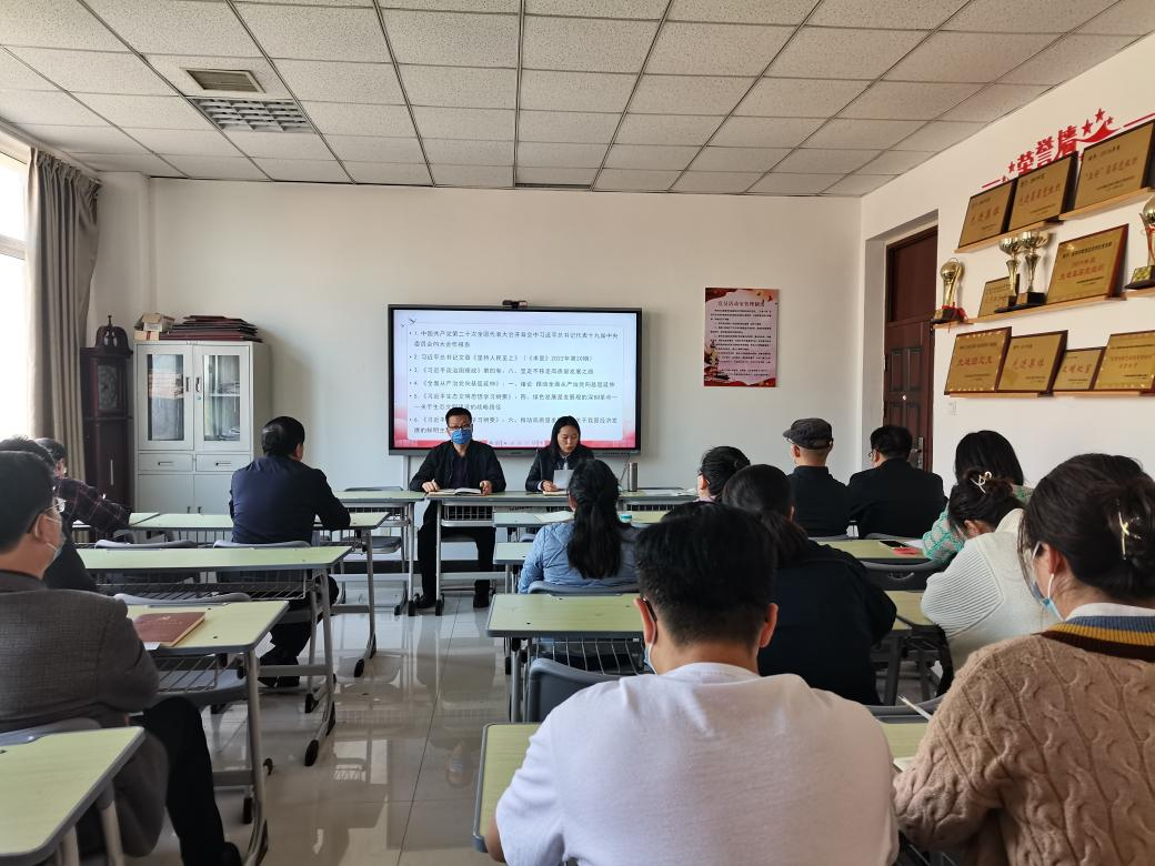 党总支副书记肖东伟领学了中国共产党第二十次全国代表大会开幕会中习近平总书记代表十九届中央委员会向大会作的报告,组织委员崔璀领学了习近平总书记文章《坚持人民至上》(《求是》2022年第20期)。