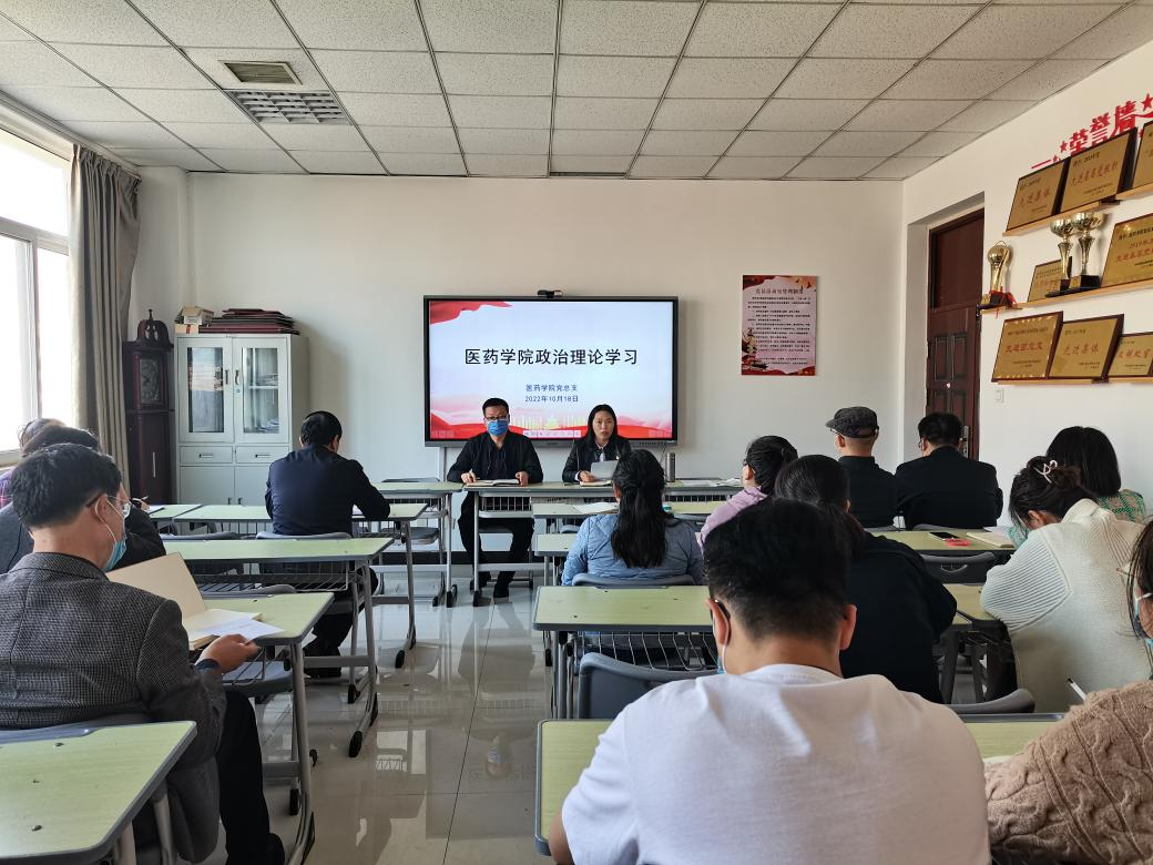 10月18日下午,医药学院党总支在办公楼408党员活动室进行政治理论学习。会议由党总支书记崔咏梅主持,学院全体教职工参加。