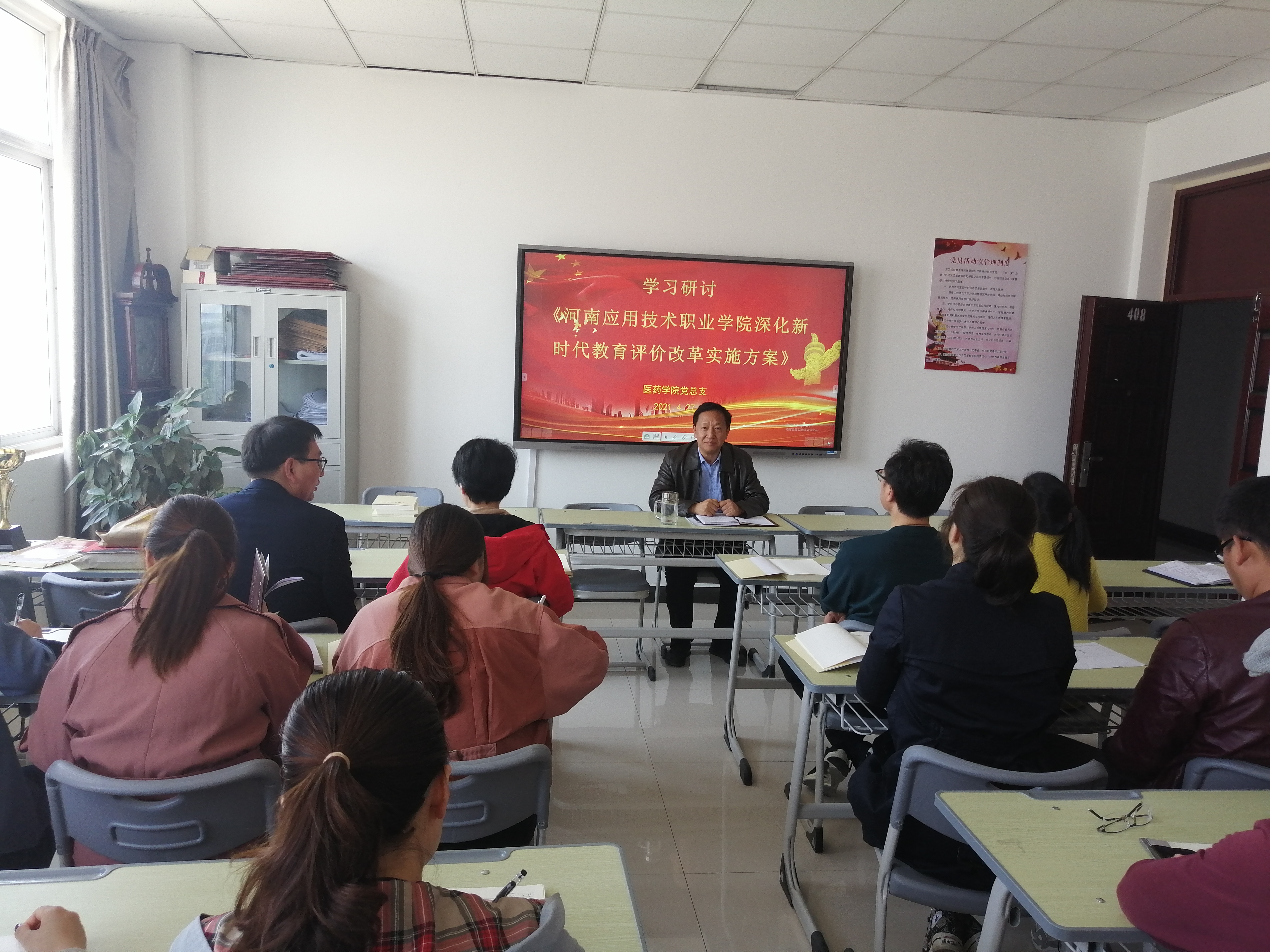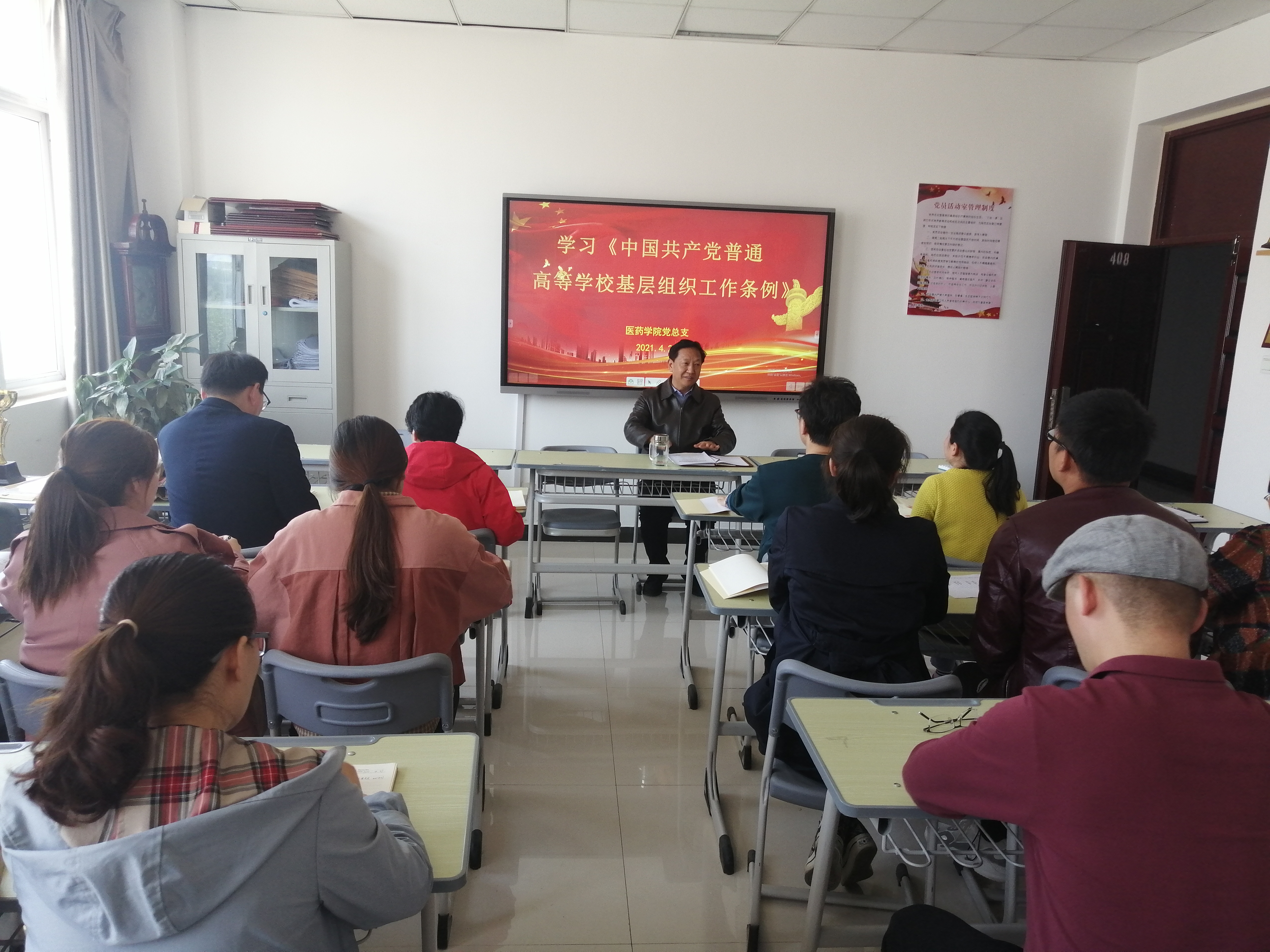 4月27日下午,按照学校统一要求,医药学院党总支在408党员活动室组织全院教职工进行集中政治学习,院长、党总支副书记韩宝来主持学习。