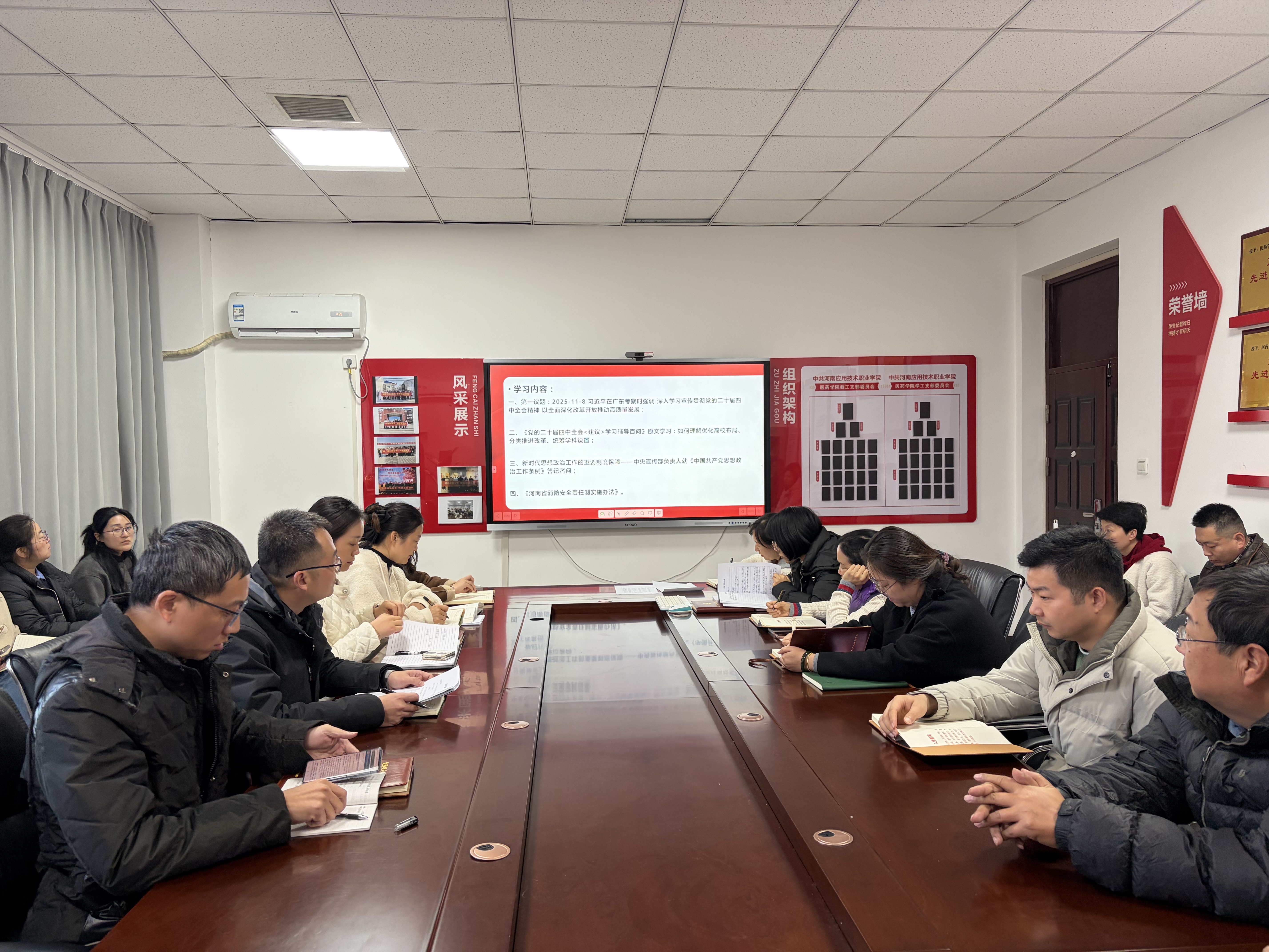 会上,张亮带领全体教师深入学习第一议题:习近平在广东考察时强调 深入学习宣传贯彻党的二十届四中全会精神 以全面深化改革开放推动高质量发展;yl6809永利集团党总支副书记、院长李元元领学《党的二十届四中全会<建议>学习辅导百问》原文:如何理解优化高校布局、分类推进改革、统筹学科设置;yl6809永利集团党总支副书记郑言领学:新时代思想政治工作的重要制度保障——中央宣传部负责人就《中国共产党思想政治工作条例》答记者问;随后,大家共同学习《河南省消防安全责任制实施办法》。