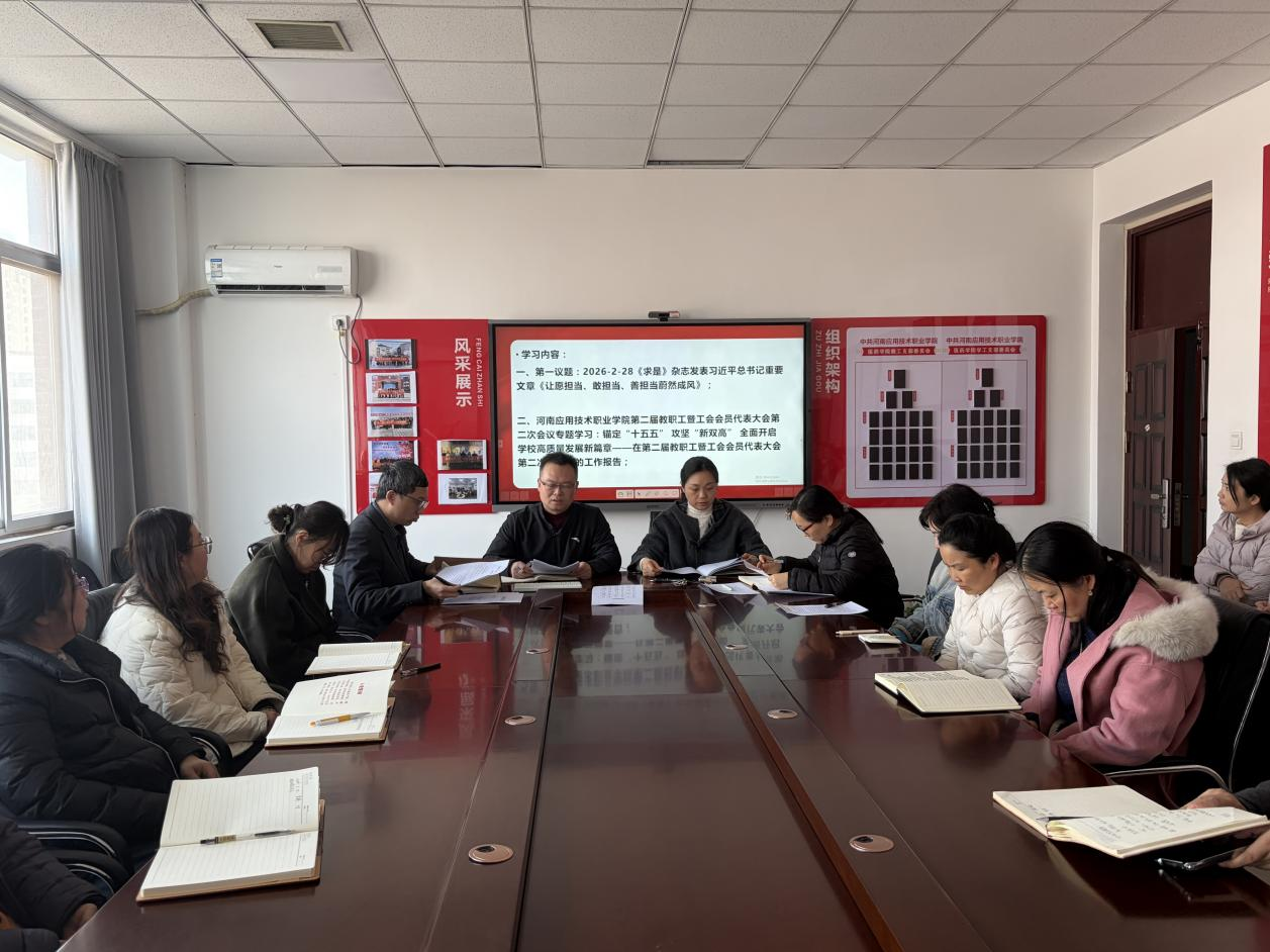 会上,张亮带领全体教师深入学习第一议题:《求是》杂志发表习近平总书记重要文章《让愿担当、敢担当、善担当蔚然成风》;院长李元元领学yl6809永利集团第二届教职工暨工会会员代表大会第二次会议专题学习:锚定“十五五”攻坚“新双高”全面开启学校高质量发展新篇章——在第二届教职工暨工会会员代表大会第二次会议上的工作报告;副书记郑言领学:中办印发《通知》在全党开展树立和践行正确政绩观学习教育、《以案释纪说法》第1辑、《以案释纪说法》第2辑;副院长唐贝领学全国教育工作会议精神、全省教育工作会议精神。