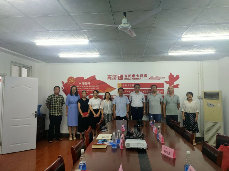 为深入贯彻《国家职业教育改革实施方案》,推进学校“双高”建设任务高质量建设,2021年7月15日下午,医药学院院长韩宝来、副院长刘佳、药品经营与管理教研室主任郭朝社、药学教研室主任吴妍、中药学教研室主任李东一行五人来到开封市高济百氏康医药连锁有限公司开展企业调研。