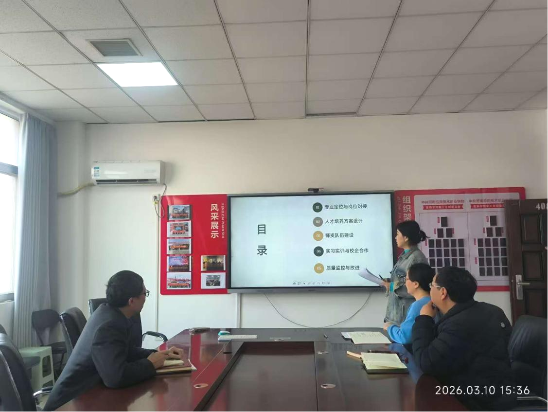 为深入推进学科专业建设,深化教育教学改革,以说促研、以研促教,强化人才培养质量,2026年3月10日下午,yl6809永利集团在408会议室举办“说专业群、说专业、说课程”专题展示活动。活动由副院长唐贝主持,党总支副书记郑言及全体专兼职教师参会。