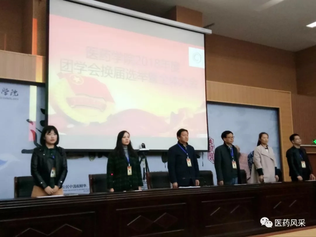 2018年3月22日,医药学院团学会在行政楼五楼报告厅举行了2018年度换届选举大会。医药学院韩宝来院长、学生处副处长李明奇老师、学生处副处长高丽莉老师、团委副书记李倩老师、医药学院院办主任肖东伟老师、医药学院团总支书记崔璀老师及医药学院的各位辅导员老师们出席大会。