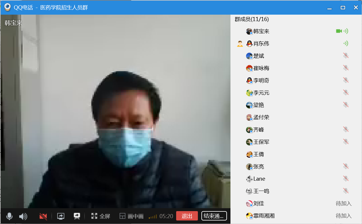2020年3月6日下午,医药学院利用网上视频会议形式召开2020年招生工作会议。医药学院所有招生人员参加会议,会议由医药学院韩宝来院长主持。