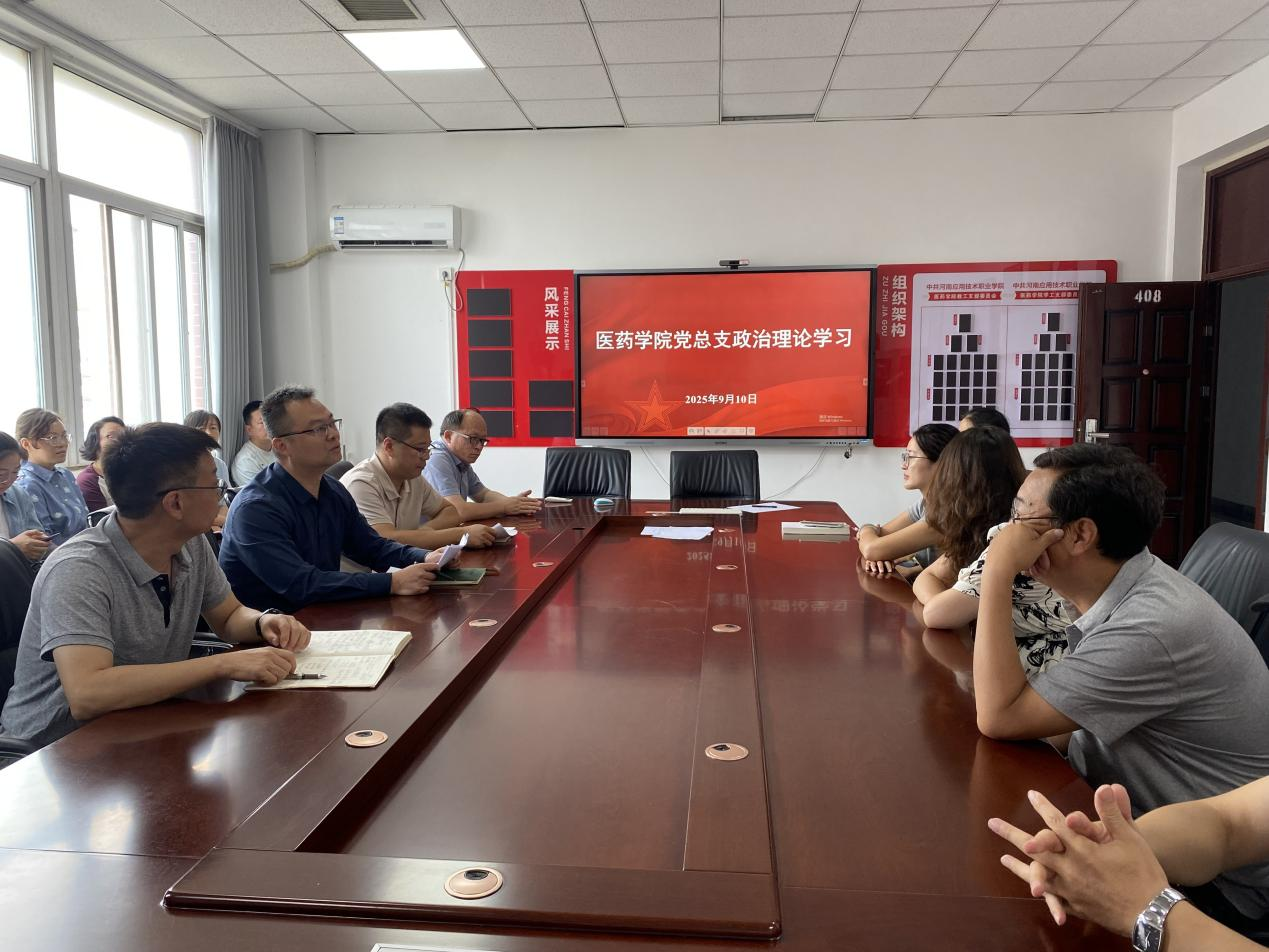 9月10日上午,医药学院党总支在办公楼408党员活动中心开展政治理论学习。本次学习由医药学院党总支书记张亮主持,医药学院全体教职工参加。