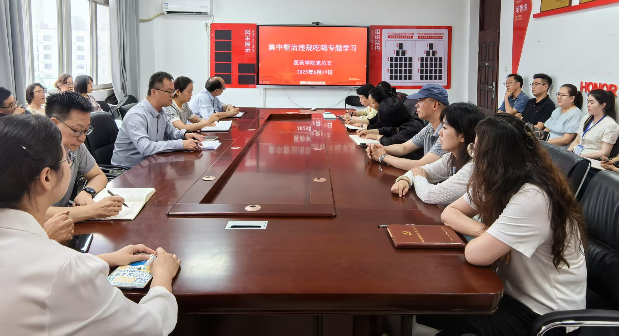 为深入贯彻落实中央八项规定精神,持之以恒纠“四风” 树新风,筑牢全体教职工廉洁自律思想防线,6月19日下午,医药学院在办公楼408党员活动中心召开集中整治违规吃喝专题学习会议。本次会议由医药学院党总支书记张亮主持,医药学院全体教职工参加。