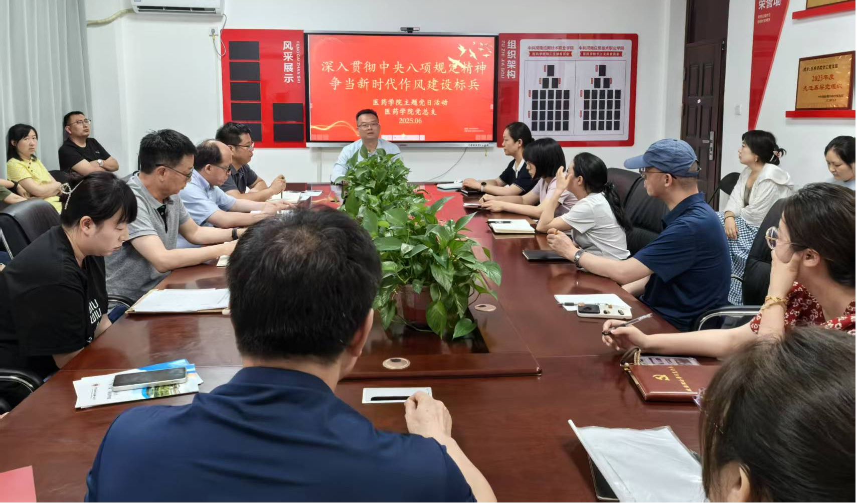为深入贯彻落实习近平总书记关于加强党的作风建设的重要论述,切实推进中央八项规定精神落地生根,6月17日下午,医药学院党总支开展主题为“深入贯彻中央八项规定精神,争做新时代作风建设标兵”的主题党日活动,学院全体党员参与,以学促行筑牢思想防线。