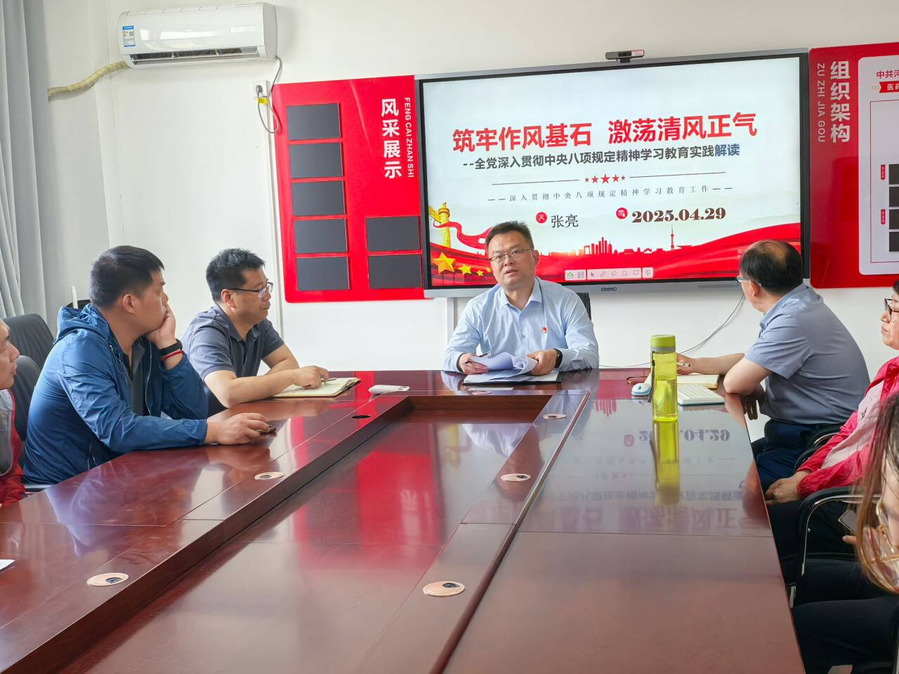 党总支书记张亮以“筑牢作风基石 激荡清风正气”为题讲授党课,全面解读开展深入贯彻中央八项规定精神学习教育的重要意义、核心要义和实践要求。让党员干部们深刻理解到践行中央八项规定精神与大家的工作、学习、生活息息相关,必须在点滴中严格践行。