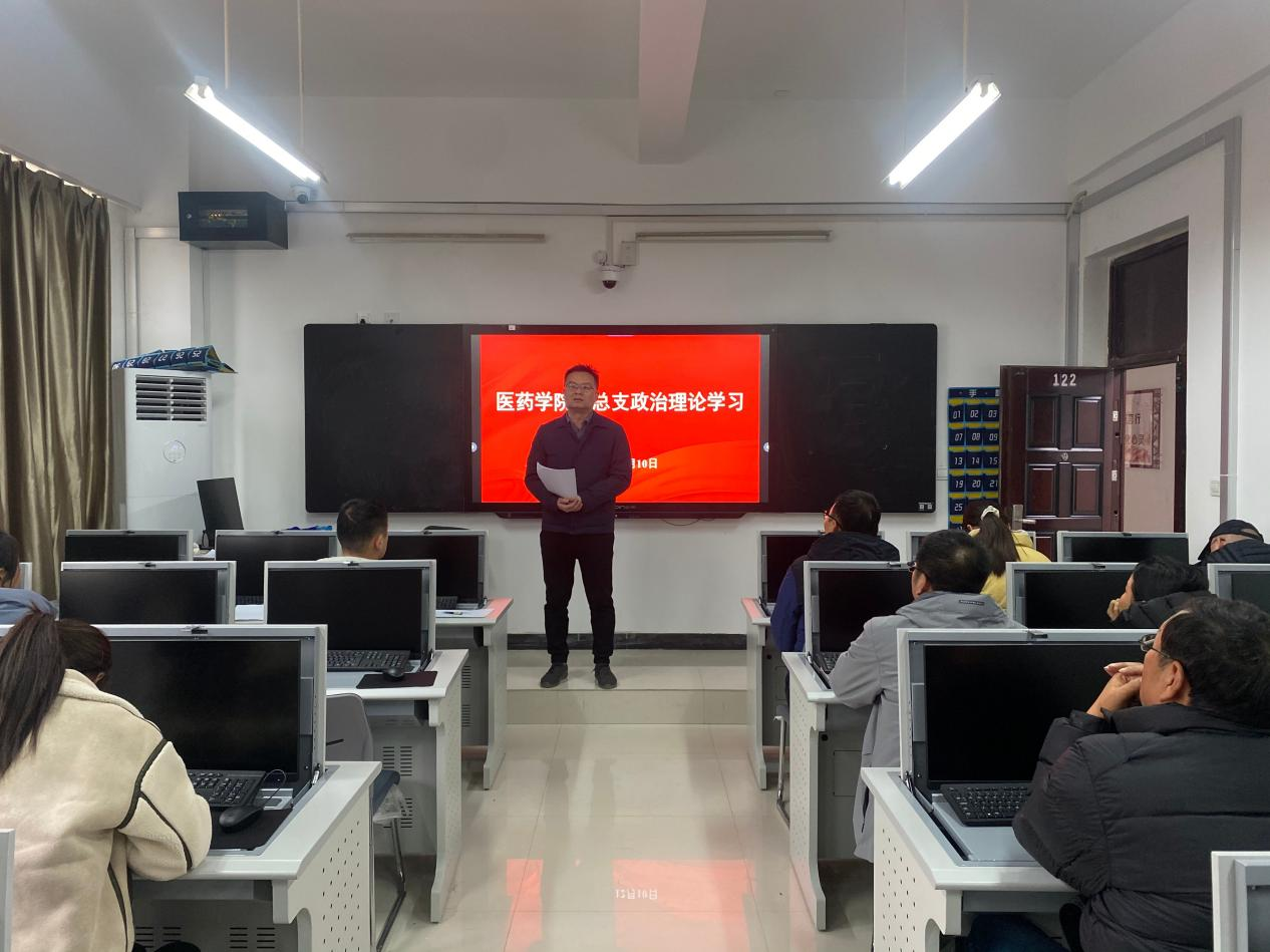 2024年12月10日下午,医药学院党总支在办公楼122开展政治理论学习。本次学习由医药学院党总支书记张亮主持,学院全体教职工参加。