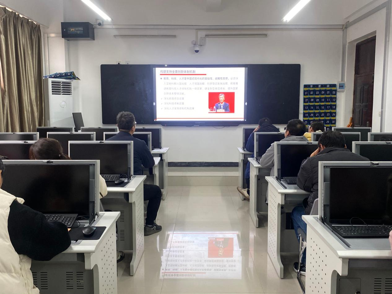 会议第二个阶段,全体教职工共同观看党的二十届三中全会精神专题培训。
