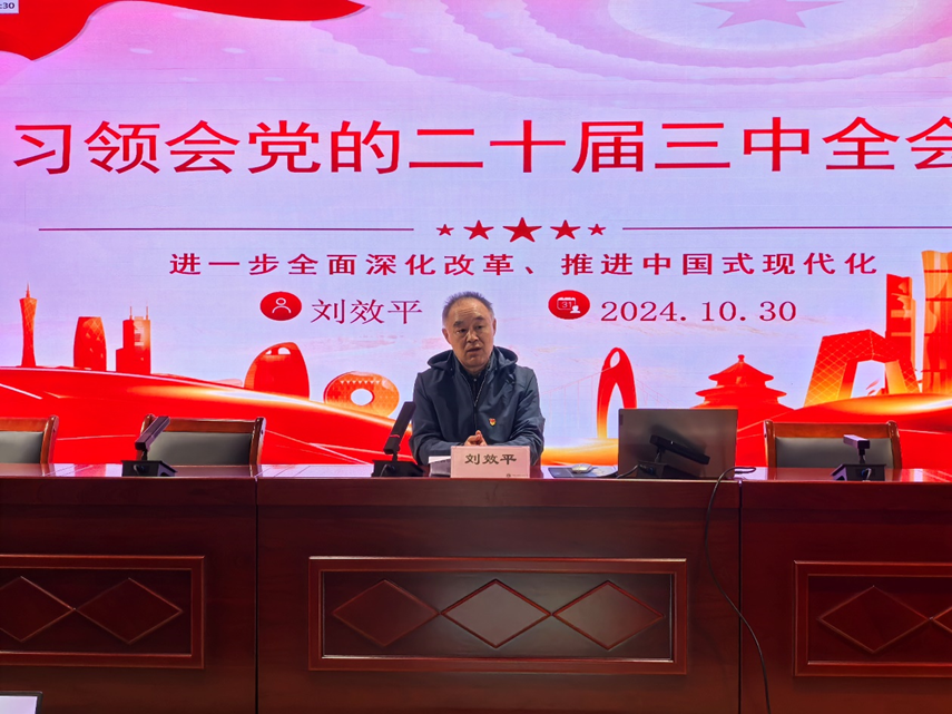 刘效平围绕“党的二十届三中全会基本概况”和“党的二十届三中全会公报内容”这两个方面展开深入讲解,全面系统地阐述了会议精神。首先,刘效平同志详细介绍了党的二十届三中全会召开的时间、地点、参会人员等基本信息,使同学们对全会的背景有了清晰的了解。随后,他对全会公报中的重要内容进行了全面解读,特别是关于进一步全面深化改革的总体部署、推进中国式现代化的战略举措等关键点进行了深刻剖析和精辟阐述。最后,刘效平对入党积极分子提出了进一步学习党内文化的明确要求。他强调,党内文化是中国共产党长久不衰的重要基石,是党的灵魂和精神支柱。作为入党积极分子,必须深入了解和学习党内文化,不断提升自身的政治素养和党性修养。