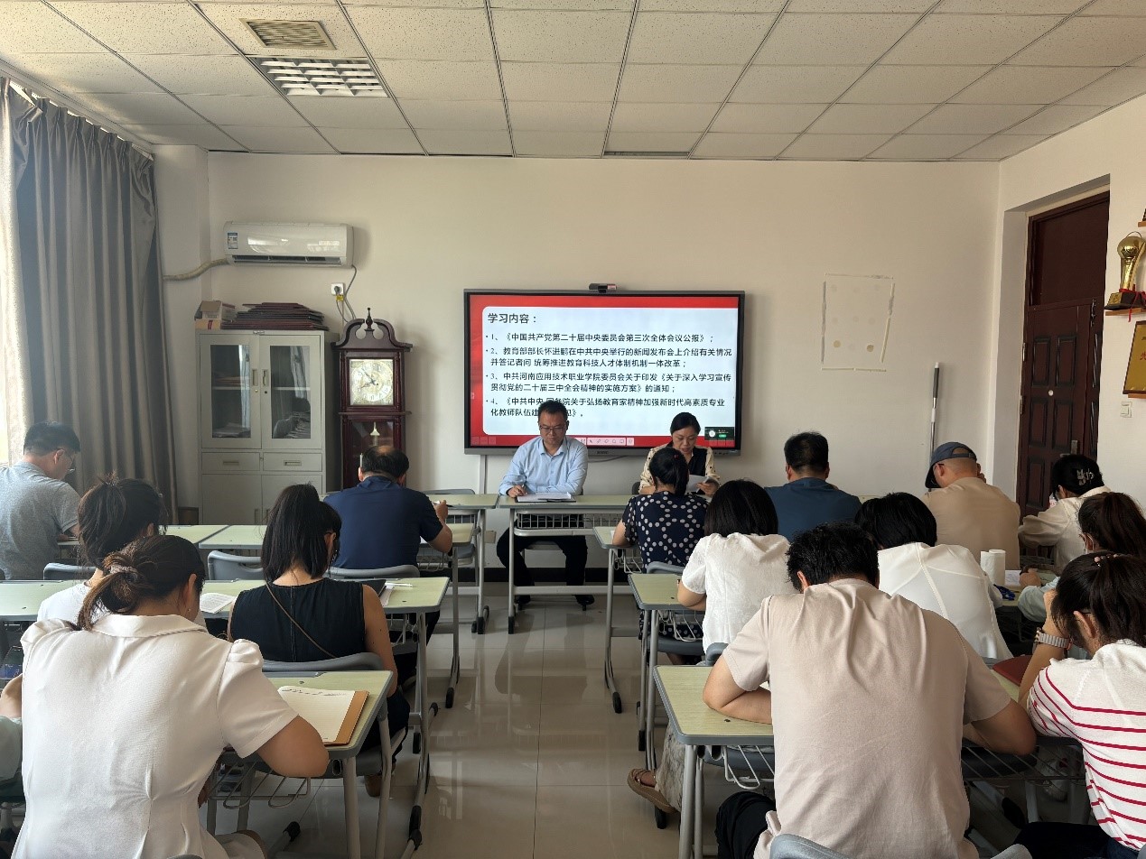 会上,大家共同学习了《中国共产党第二十届中央委员会第三次全体会议公报》;教育部部长怀进鹏在中共中央举行的新闻发布会上介绍有关情况并答记者问 统筹推进教育科技人才体制机制一体改革;中共yl6809永利集团委员会关于印发《关于深入学习宣传贯彻党的二十届三中全会精神的实施方案》的通知;《中共中央 国务院关于弘扬教育家精神加强新时代高素质专业化教师队伍建设的意见》。