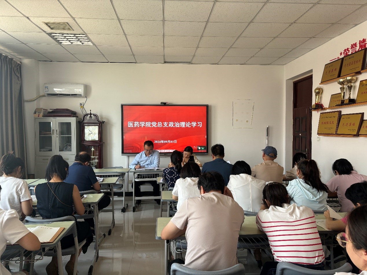 9月3日下午,医药学院党总支在办公楼408党员活动室开展政治理论学习。本次学习由学院党总支书记张亮主持,院长李元元及全体教职工参加。