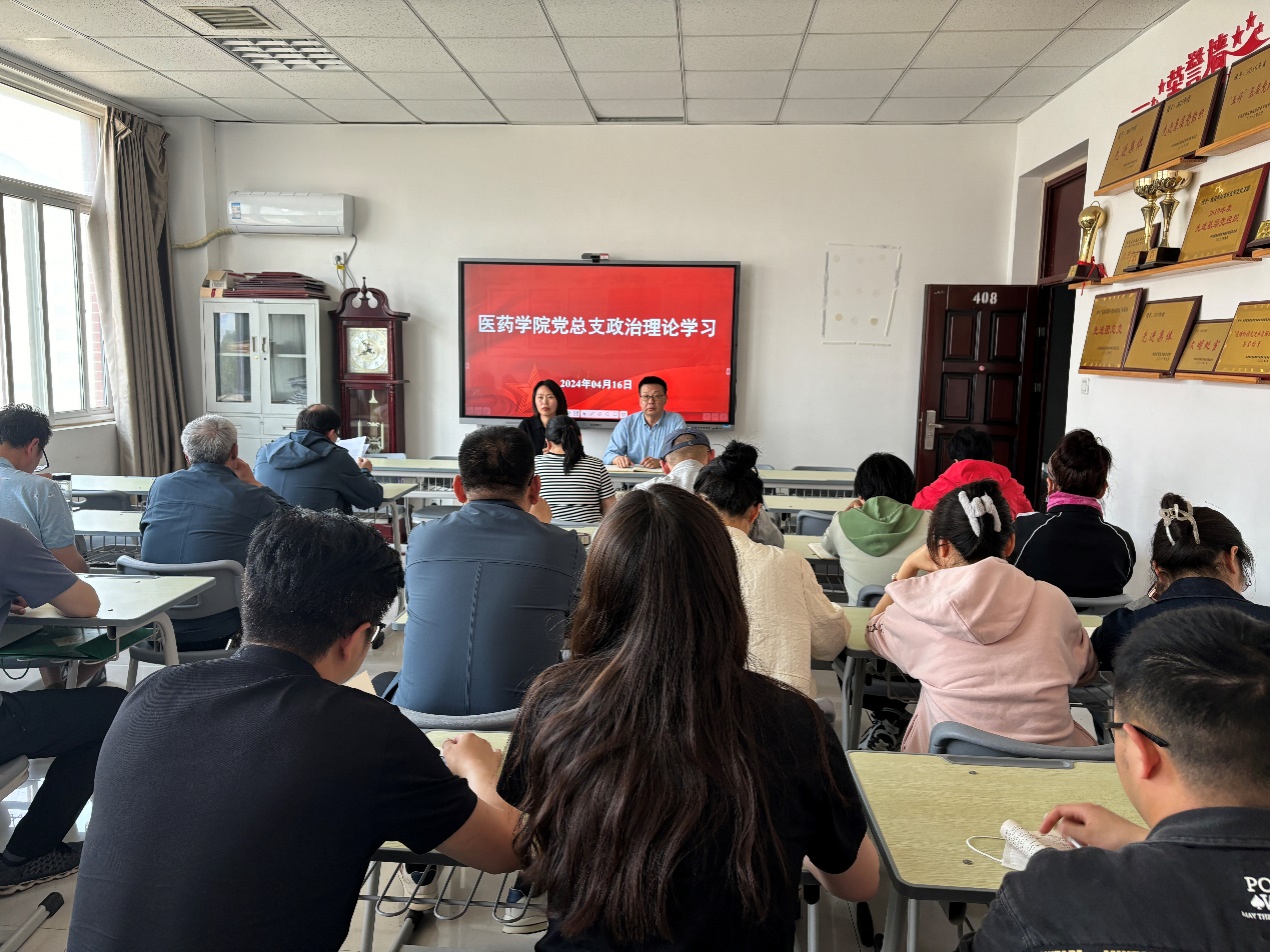 4月16日下午,医药学院党总支在办公楼408党员活动室开展政治理论学习。本次学习由学院党总支书记崔咏梅主持,院长李明奇及全体教职工参加。