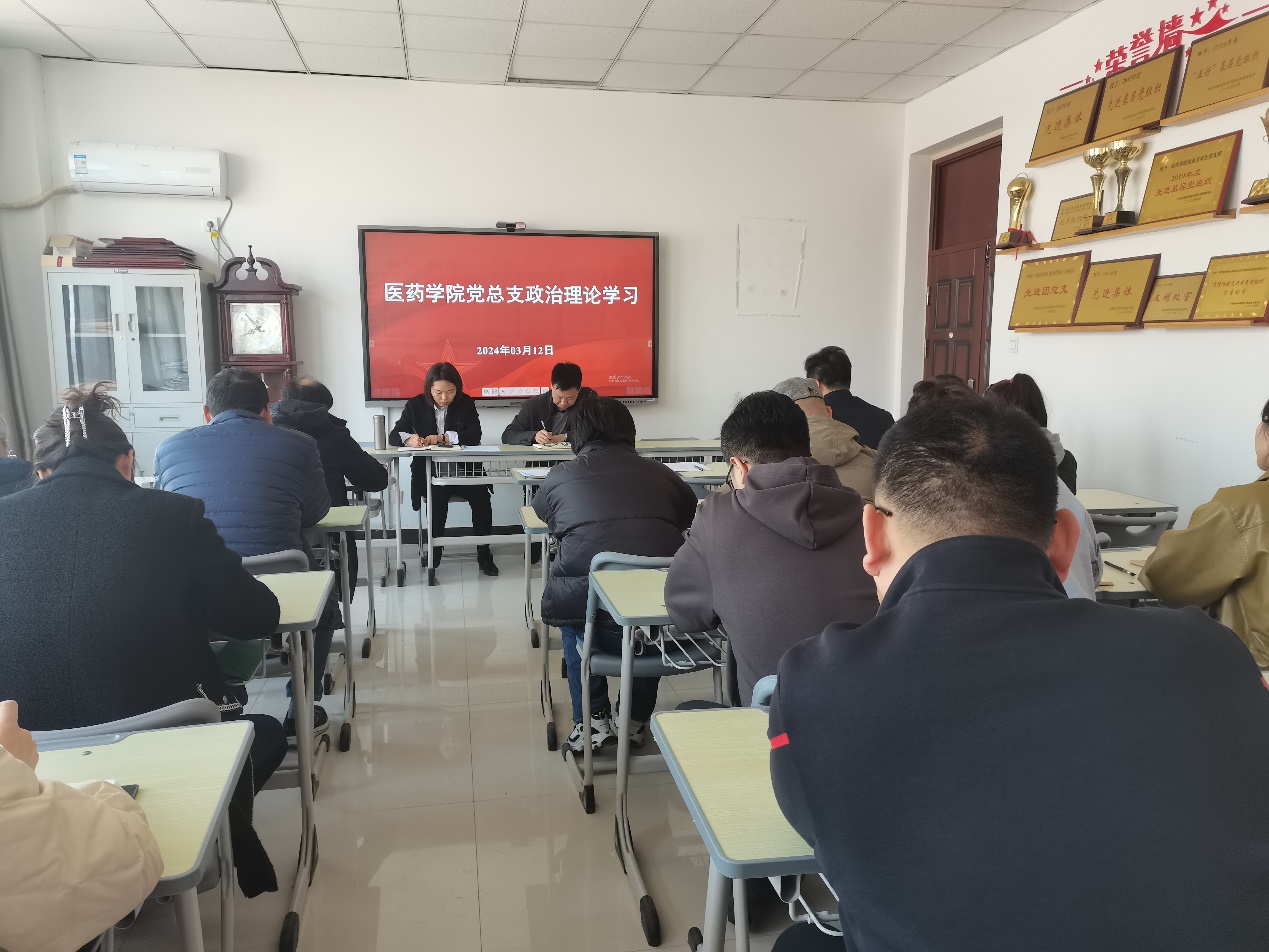3月12日下午,医药学院党总支在办公楼408党员活动室开展政治理论学习。本次学习由学院党总支书记崔咏梅主持,医药学院全体教职工参加。