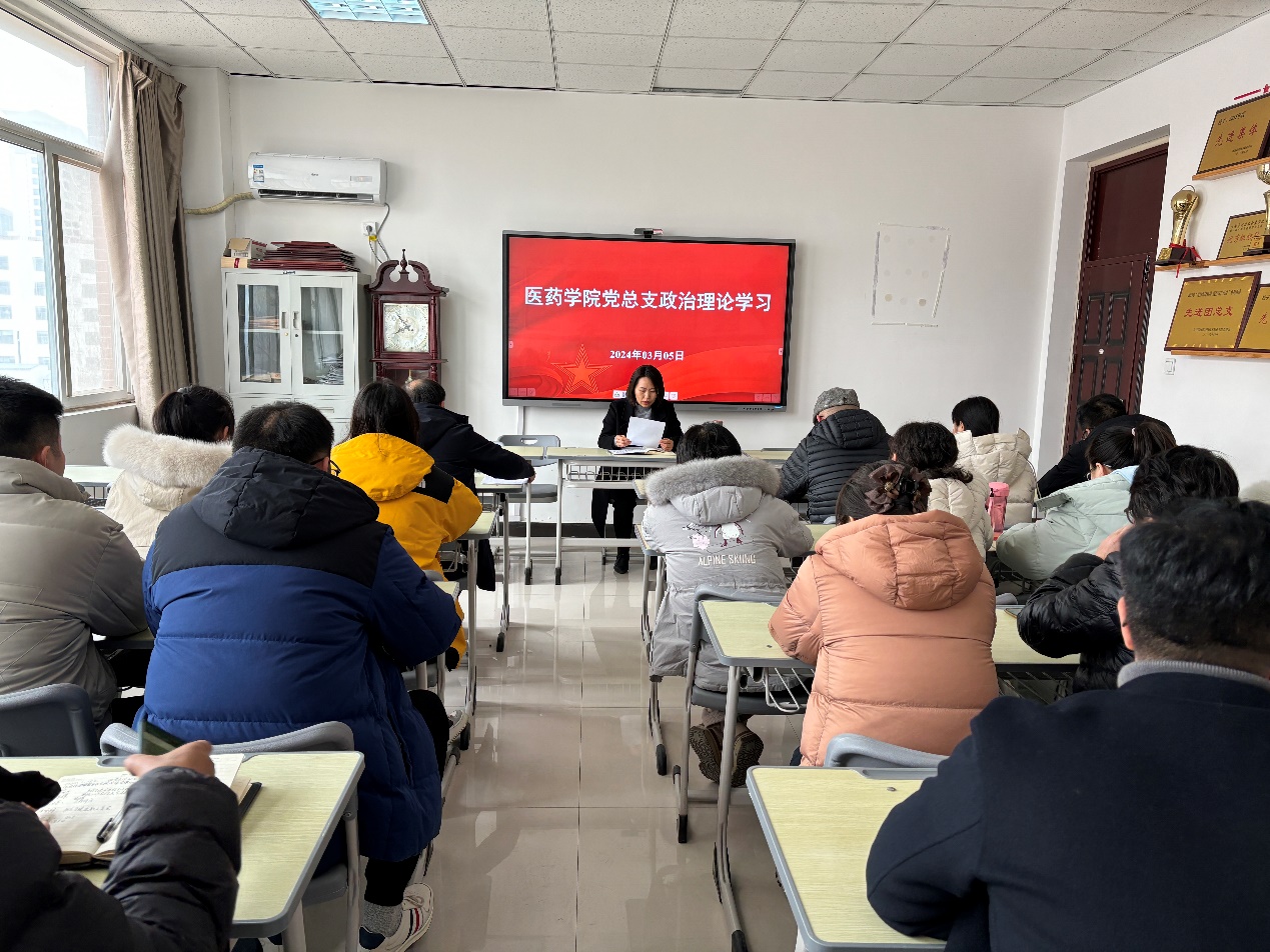 3月5日下午,医药学院党总支在办公楼408党员活动室开展政治理论学习。本次学习由学院党总支书记崔咏梅主持,医药学院全体教职工参加。