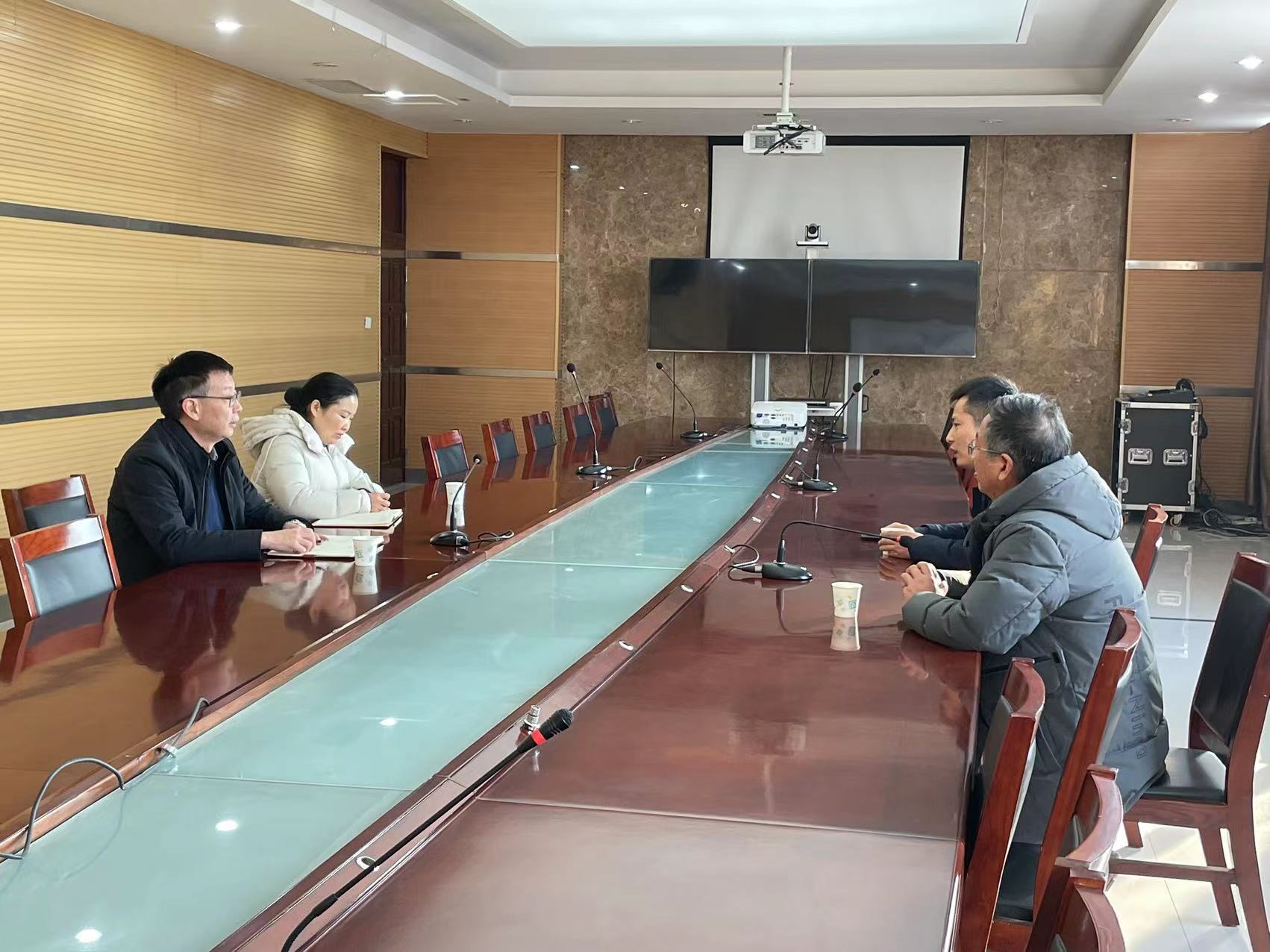 2024年1月10日上午,独道医堂公司总经理曹开路等领导来到我校医药学院参观交流,医药学院院长李明奇、党政办公室主任李晓燕参加交流座谈。