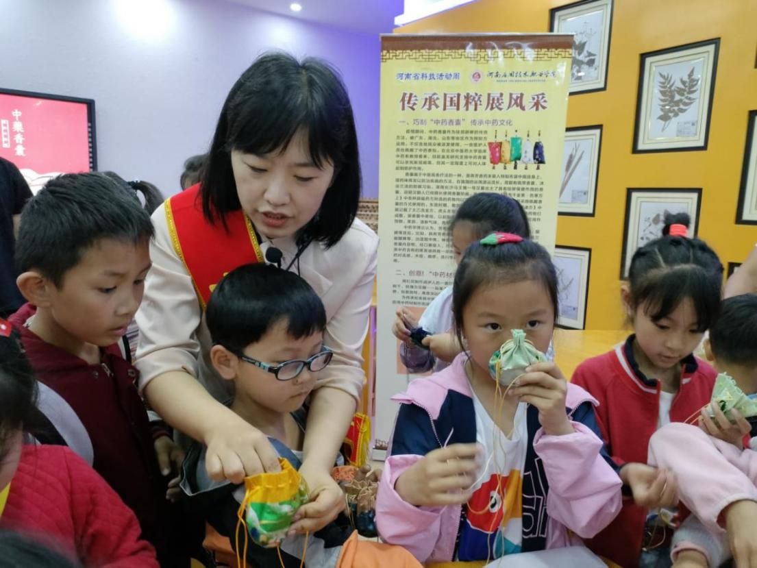医药学院党总支将党史学习教育与弘扬中医药文化结合起来,将“学党史、悟思想、办实事、开新局”贯彻落实在传播中医药文化行动中。5月23日,组织小学生走进我院中医药博物馆,学生们参观了中医药文化展示区、中药标本展览区、中医药文化体验区,观看了《端午时节话香囊》动画教学片,亲身体验了中医药材的研磨、并为自己制作了防蚊驱秽的小香囊。小学生们“零距离”接触和体验中医药文化,增进了解和认同,提升中医药文化自信。