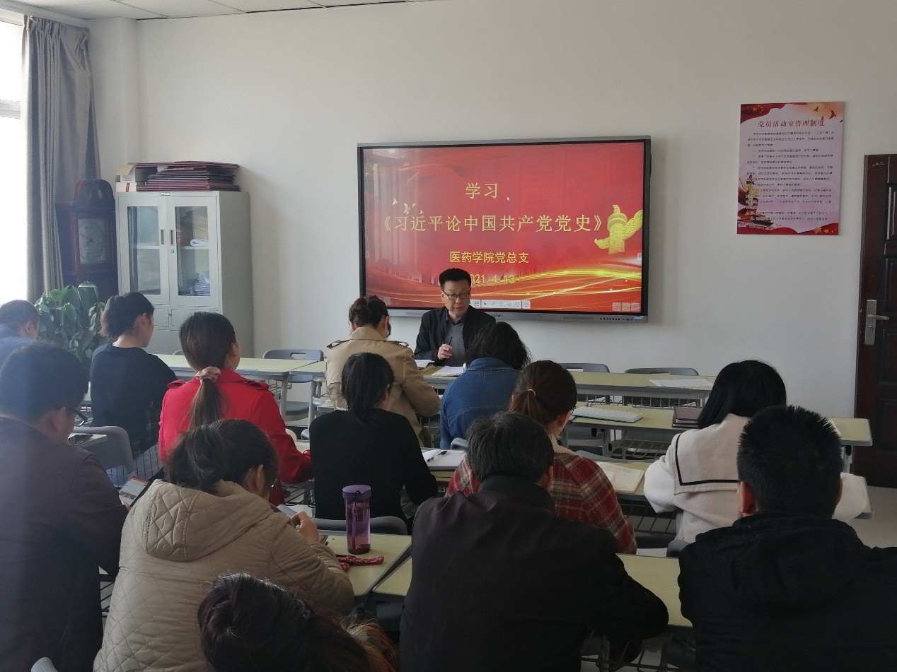 4月13日下午,按照学校统一要求,医药学院党总支在408党员活动室组织全院教职工进行党史学习教育集中学习,党总支书记李明奇主持学习。
