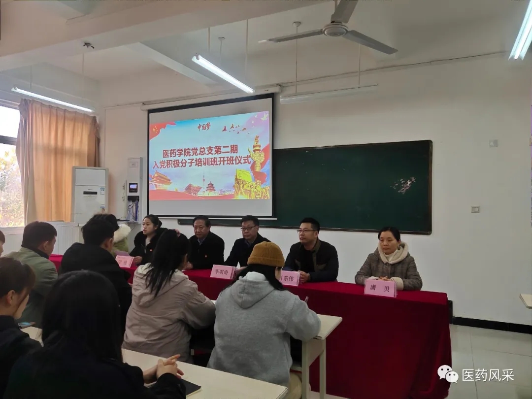 为加强学生入党积极分子的党性培养,深化党的基本理论、基本知识的教育,2020年11月24日中午,医药学院党总支在教学楼203教室举行了2020年度入党积极分子培训开班仪式。医药学院院长韩宝来、党总支书记李明奇、党总支副书记梁艳和其他党总支委员以及医药学院117名入党积极分子参加了开班仪式。开班仪式由党总支副书记梁艳主持。