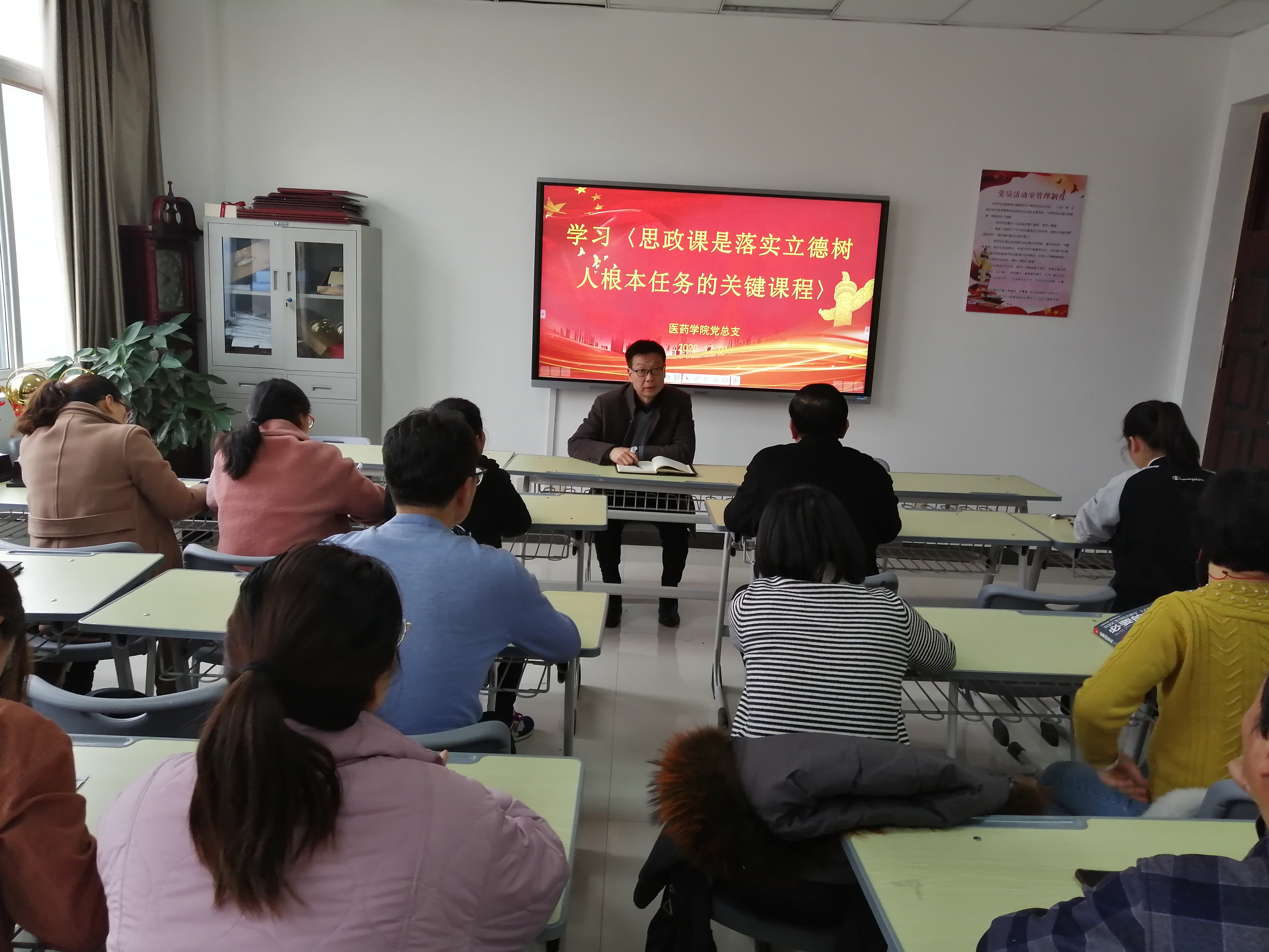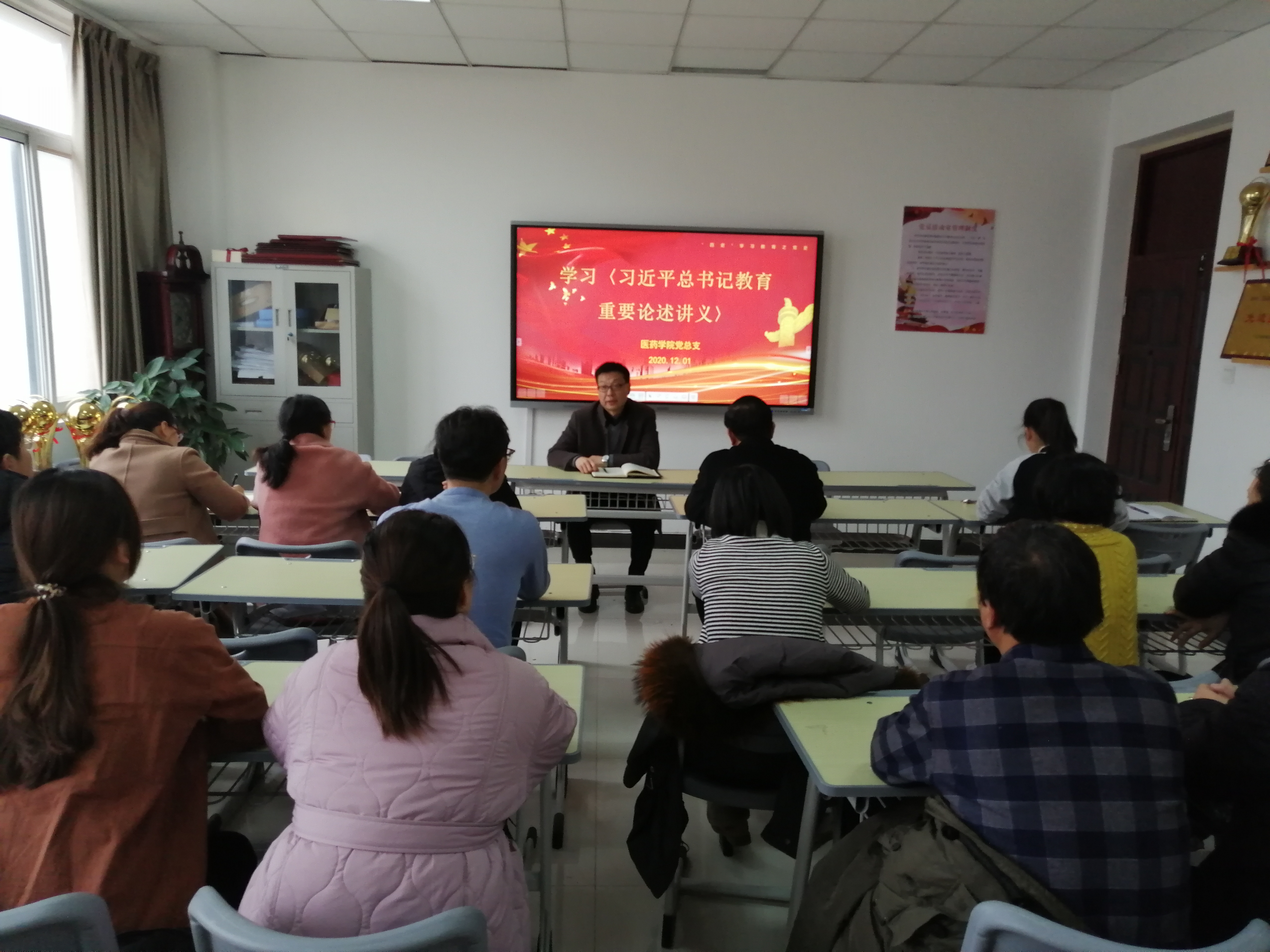 12月1日下午,按照学校统一要求,医药学院党总支在408党员活动室组织全院教职工进行集中政治学习,党总支书记李明奇主持学习活动。