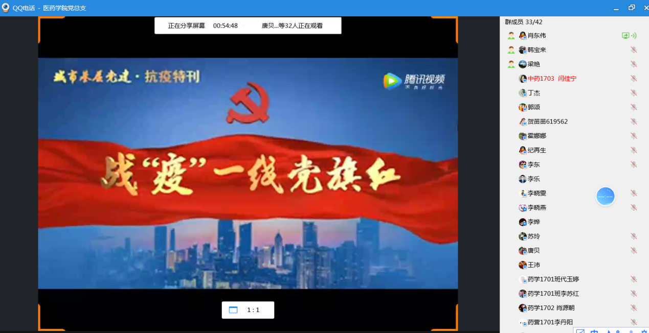 观影结束后,全体党员以党支部为单位,以“迎党的生日、讲战疫故事、悟初心使命”为主要内容,线上召开组织生活会。支部党员在会上分享身边故事、讲切身体会,大家纷纷表示要认真贯彻落实习近平总书记关于疫情防控的重要讲话精神,向战斗在抗“疫”一线的英雄们学习,学习他们勇担使命的精神、保护生命的执着以及立足岗位的坚守,进一步坚定信心,立足本职,充分发挥党员的先锋模范作用。
