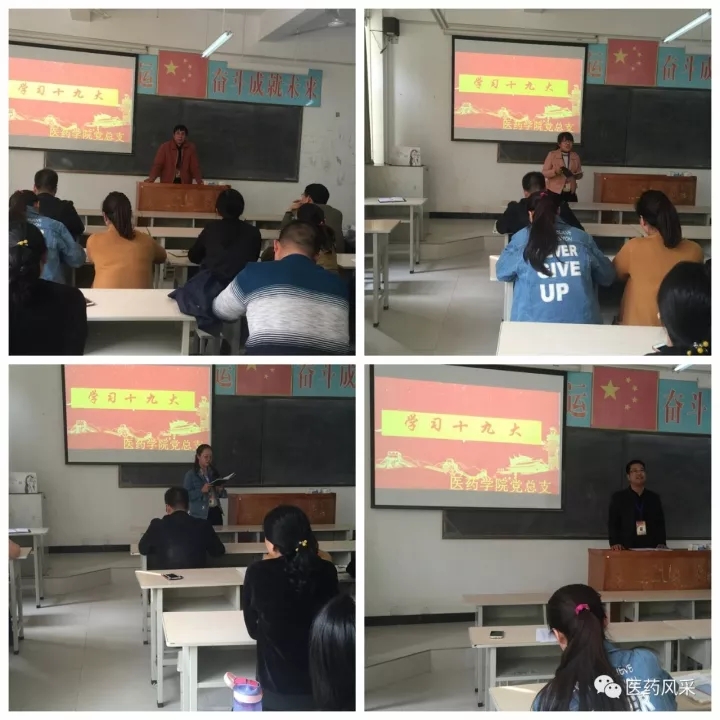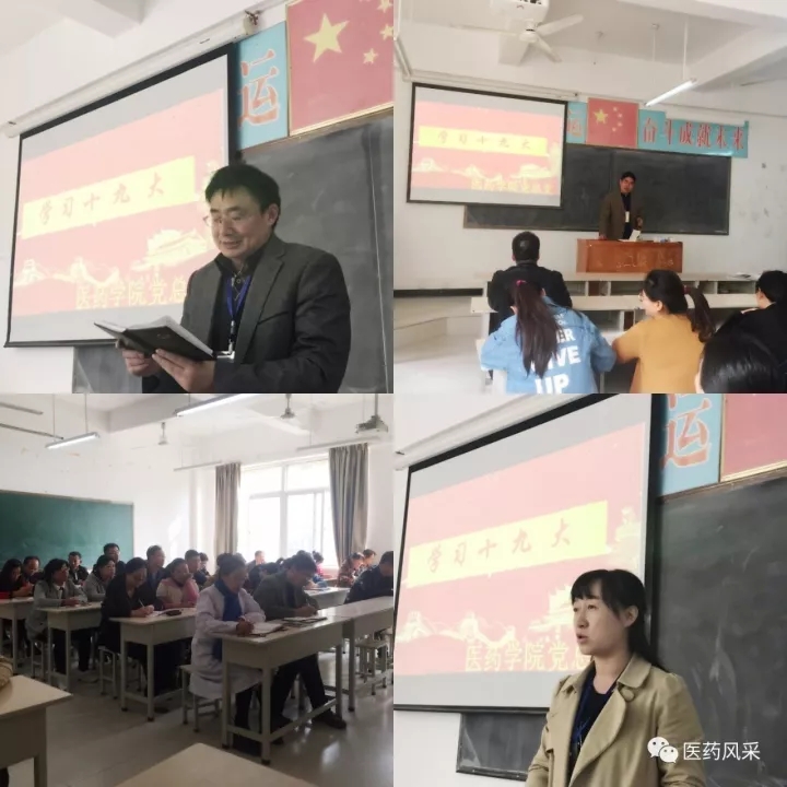 根据校党委的工作安排,2017年10月24日下午1点30分,医药学院全体教职工在教学楼104教室共同学习了《决胜全面建成小康社会,夺取新时代中国特色社会主义伟大胜利——习近平代表第十八届中央委员会向大会作的报告摘登》。