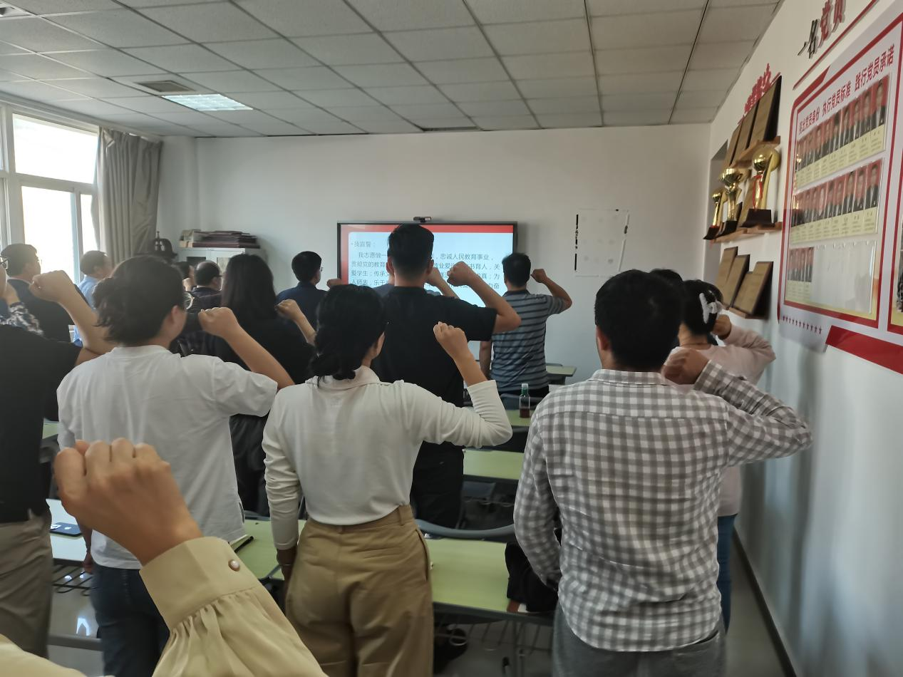 会上,大家共同学习了《中共河南省委教育工委、中共河南省教育厅党组印发<关于在党员干部中开展“明方向、立规矩、正风气、强免疫”专题纪律教育的工作方案>的通知》文件精神,并结合学校纪委汇编的师德师风典型案例专辑二开展专题纪律教育。崔咏梅强调所有教职员工要牢记“立德树人”根本任务,做到“德高为师、身正为范”,为党和国家培养“德才兼备”的人才,要常怀“四有好老师”的情怀,严于律己,在平时的生活和工作中要有底线意识和红线意识,经常自查自纠,严肃纪律,提高站位,强化纪律意识、规矩意识。最后崔咏梅带领大家重温教师誓词,要求全体教师坚守教师职业道德,服务学生,努力奉献自己的智慧和力量。
