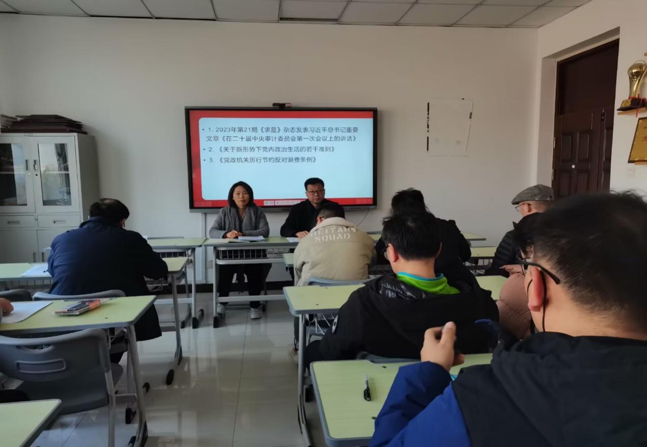 会上,大家共同学习了《求是》2023年第21期-习近平总书记重要文章《在二十届中央审计委员会第一次会议上的讲话》;《关于新形势下党内政治生活的若干准则》;《党政机关厉行节约反对浪费条例》等相关内容。