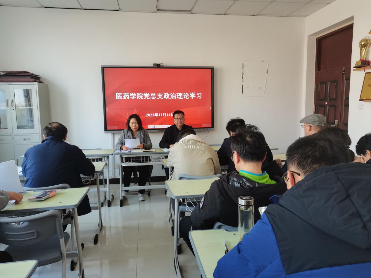 11月14日下午,医药学院党总支在办公楼408党员活动室开展政治理论学习。本次学习由学院党总支书记崔咏梅主持,院长李明奇及全体教职工参加。