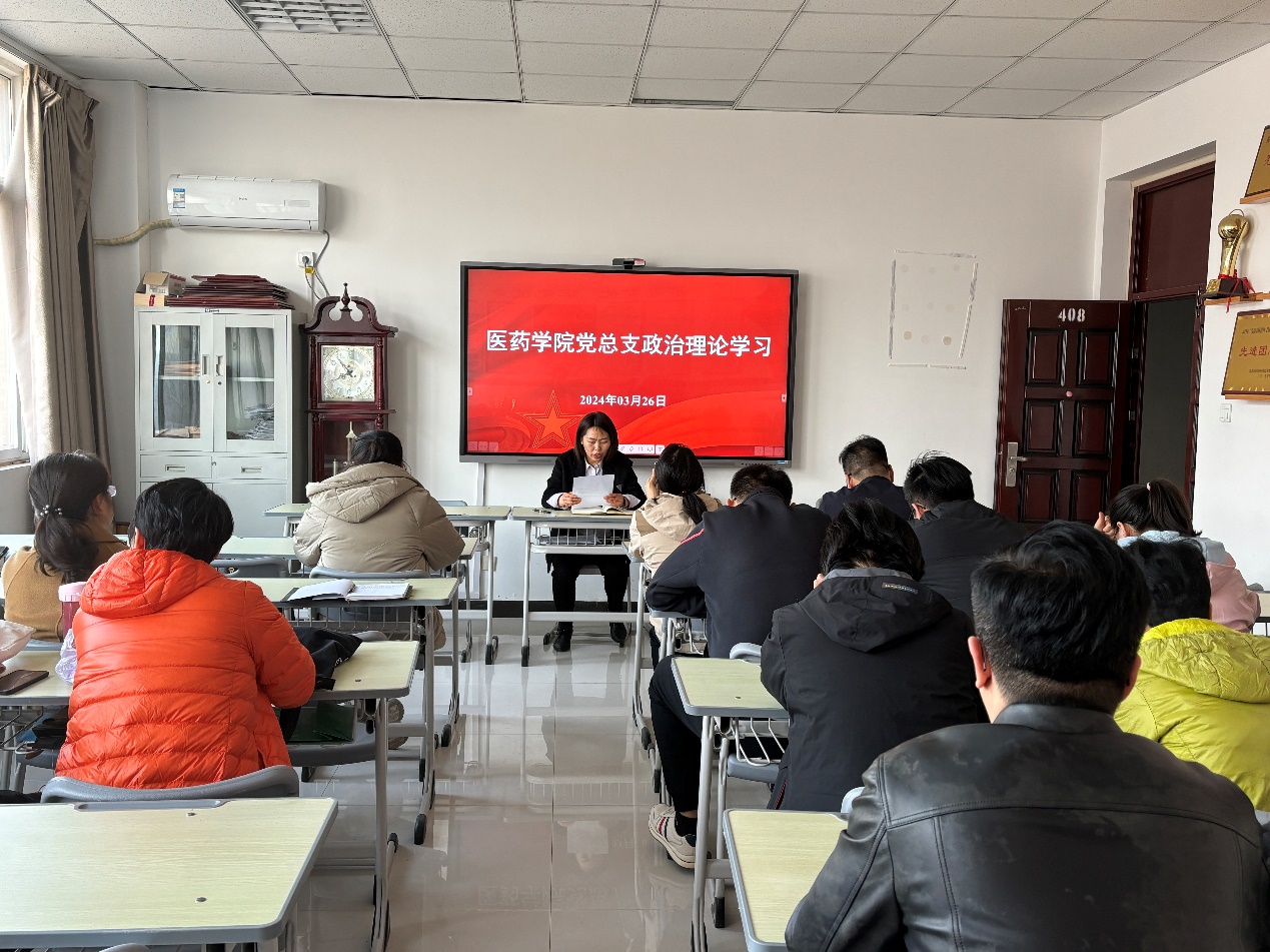 3月26日下午,医药学院党总支在办公楼408党员活动室开展政治理论学习。本次学习由学院党总支书记崔咏梅主持,医药学院全体教职工参加。