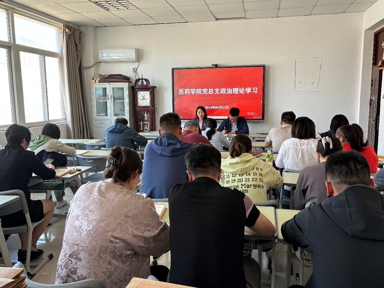 4月23日下午,医药学院党总支在办公楼408党员活动室开展政治理论学习。本次学习由学院党总支书记崔咏梅主持,院长李明奇及全体教职工参加。