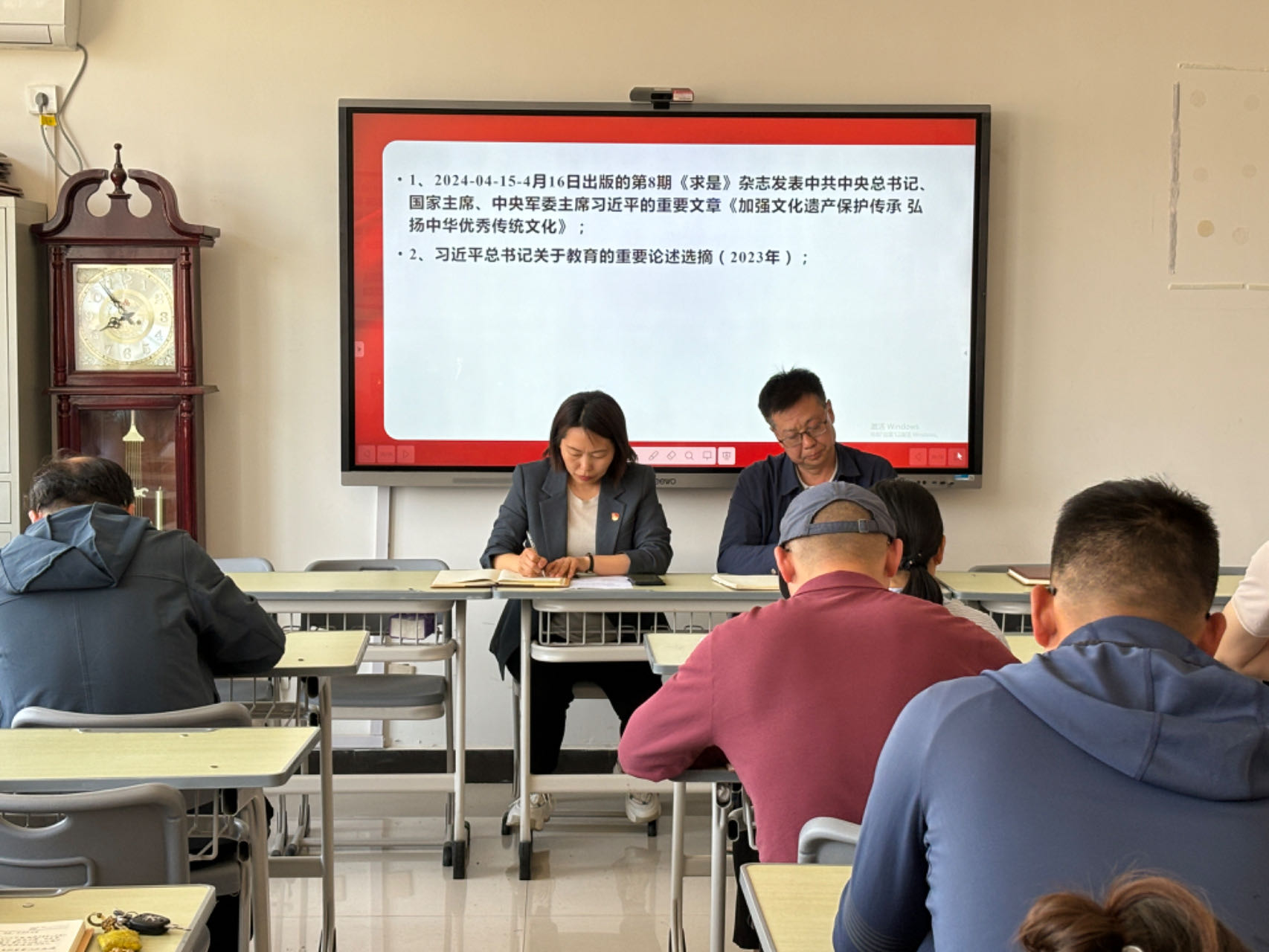 会上,大家共同学习了第8期《求是》杂志发表中共中央总书记、国家主席、中央军委主席习近平的重要文章《加强文化遗产保护传承 弘扬中华优秀传统文化》;习近平总书记关于教育的重要论述选摘(2023年)。