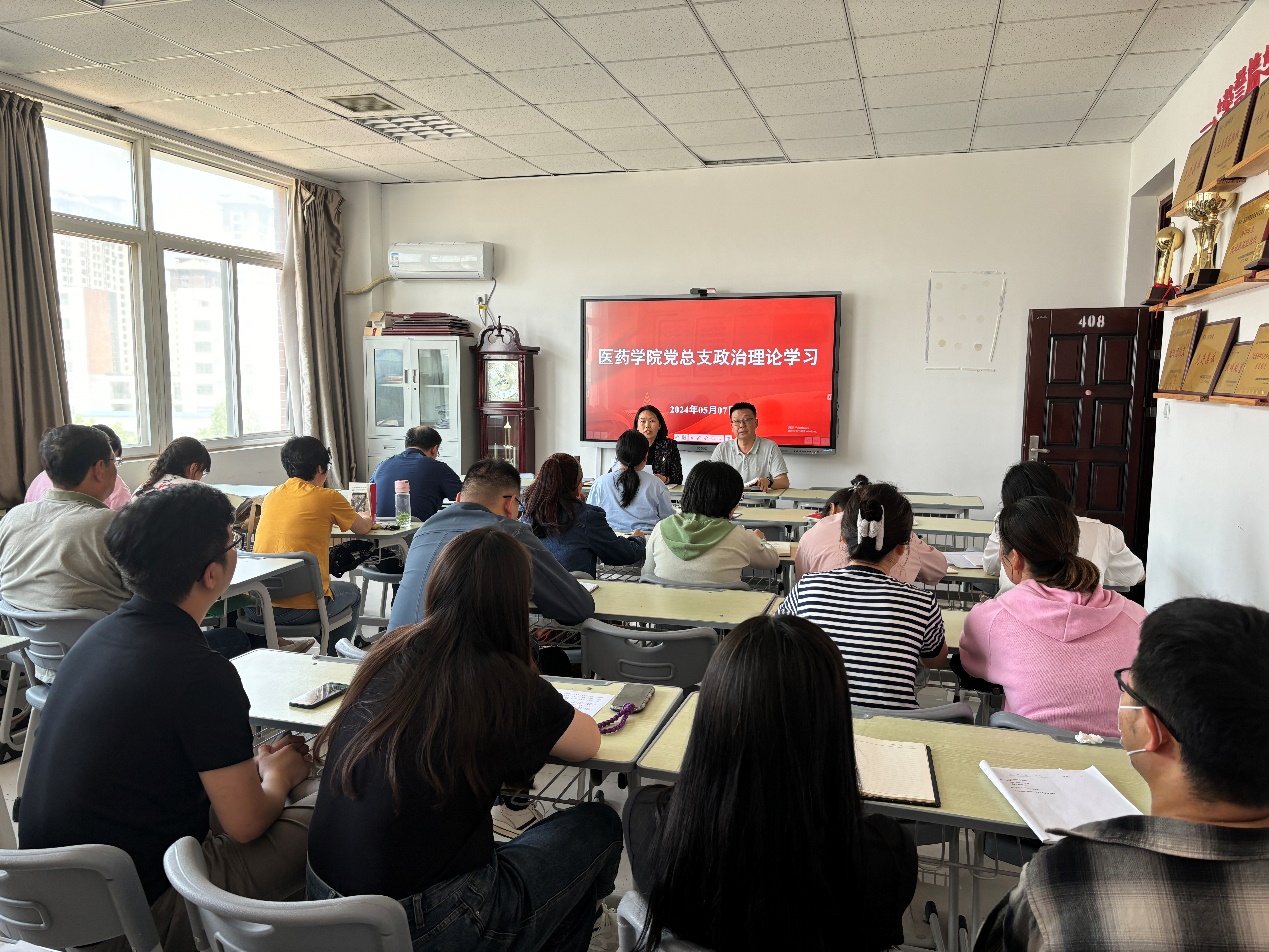 5月7日下午,医药学院党总支在办公楼408党员活动室开展政治理论学习。本次学习由学院党总支书记崔咏梅主持,院长李明奇及全体教职工参加。