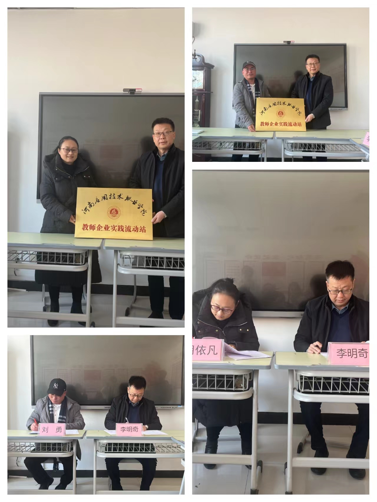 随后,景华汉方雾化生物科技有限公司总经理刘勇和医药学院院长李明奇进行了教师企业流动站协议签订和授牌仪式;颍河中药生物工程有限公司总经理胡依凡和医药学院院长李明奇行了教师企业流动站、学生实训基地协议签订和授牌仪式。