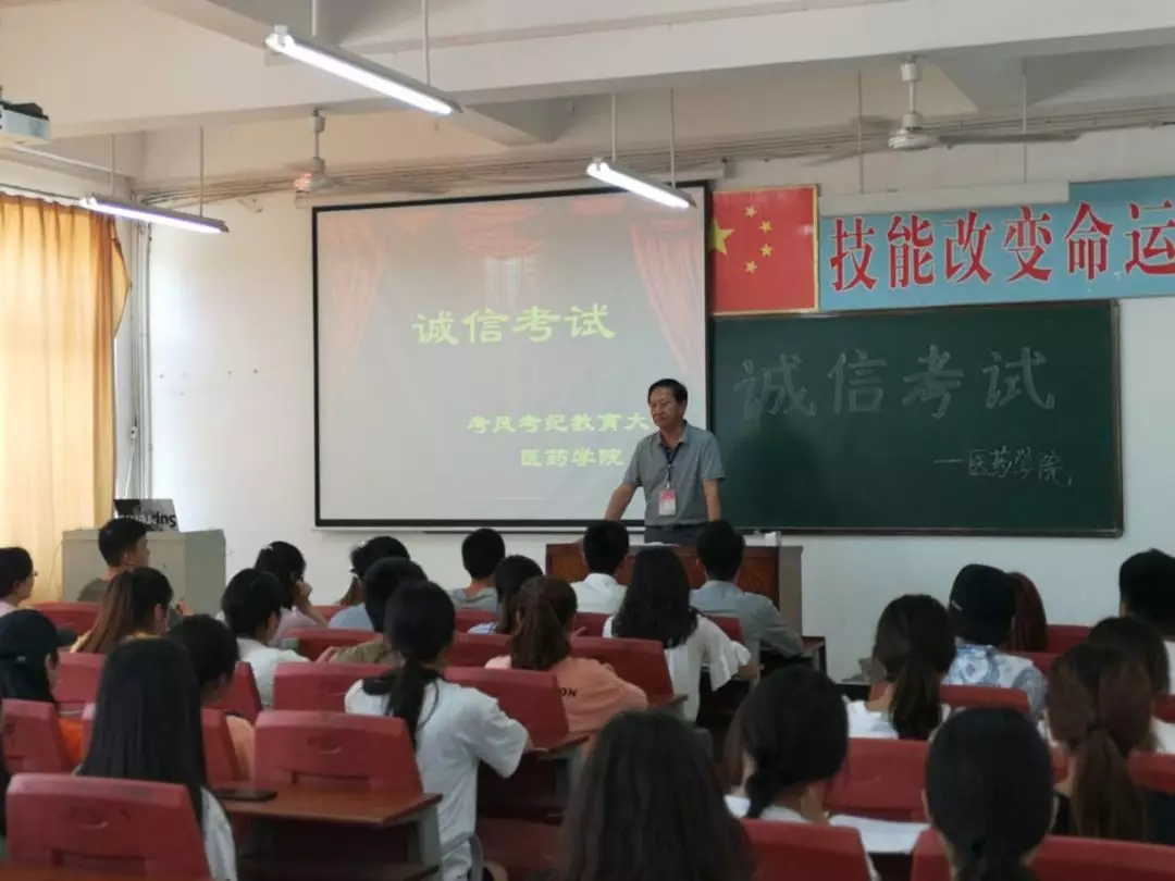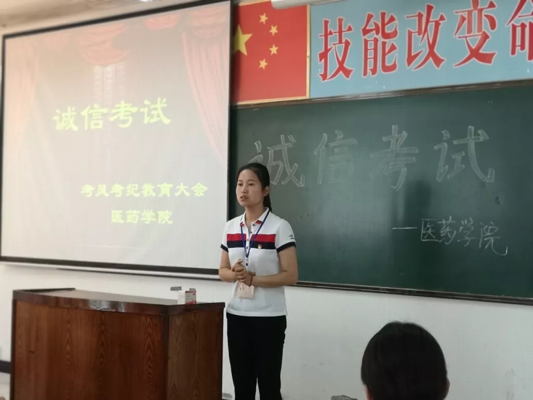 期末考试临近,不断激发学生的学习积极性和主动性,营造公平、公正、诚实守信的考试环境,形成人人学习、时时学习的良好学习风气,2019年6月14日中午1点,医药学院于教学楼阶梯教室举行学风建设暨诚信考试动员大会。全体辅导员老师以及各班学生干部代表参加会议。