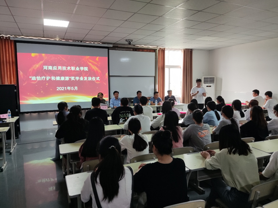 2021年1月,我校与河南迪怡疗护科技开发有限公司和河南健康源生物科技有限公司签订了产学研合作协议,两公司在医药学院设立企业奖学金,旨在鼓励和表彰思想上进、品学兼优、专业成绩突出,德、智、体、美、劳全面发展优秀学生。