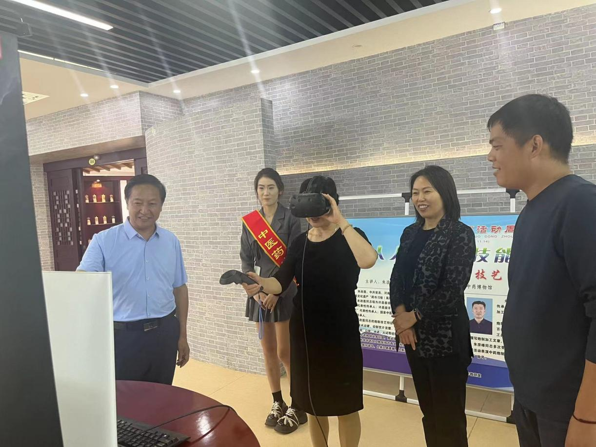 朱虹一行参观了博物馆的中医药传统文化区、中药标本区、中医药数字化互动展示区等三大区域,并通过VR植物园设备体验了模拟实景采摘中草药。了解到中医药博物馆的建设思路、丰富内涵和开展活动情况后,朱虹对我校作为“河南省社会科学普及基地”“首批河南省普通高中生实践基地”,在博物馆建设、中医药文化传播和社会科学知识普及等方面做出的成绩给予了高度评价。