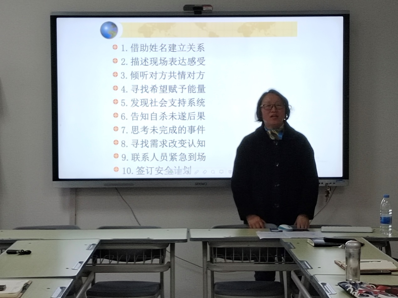 为持续推进学生心理健康教育工作,提高辅导员心理危机应对能力,11月21日下午,医药学院开展了致命性心理危机现场干预措施专题分享活动。此次活动由辅导员苏玲主讲,医药学院全体专兼职辅导员参加。