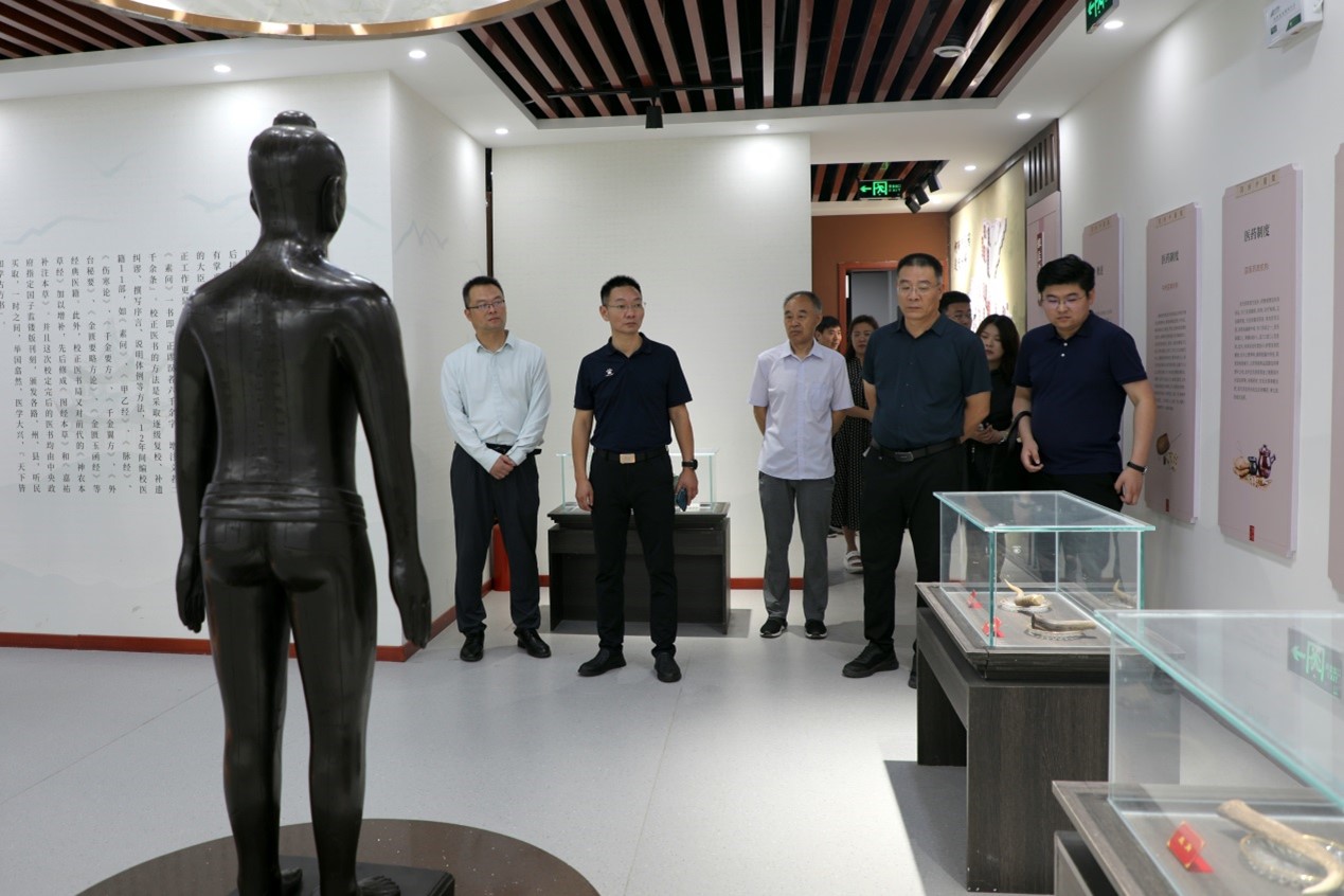 为深入贯彻落实习近平总书记关于中医药工作的重要论述精神,加快推动我市中医药事业和产业发展,服务“一动一静一中医”战略实施,8月2日上午,开封市委政研室副主任秦纪银一行到我校中医药博物馆参观调研。我校副校长刘效平、医药学院党总支书记张亮等相关人员陪同调研。