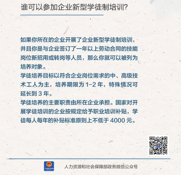 【人社课堂】什么是企业新型学徒制?谁可以参加企业新型学徒制培训?